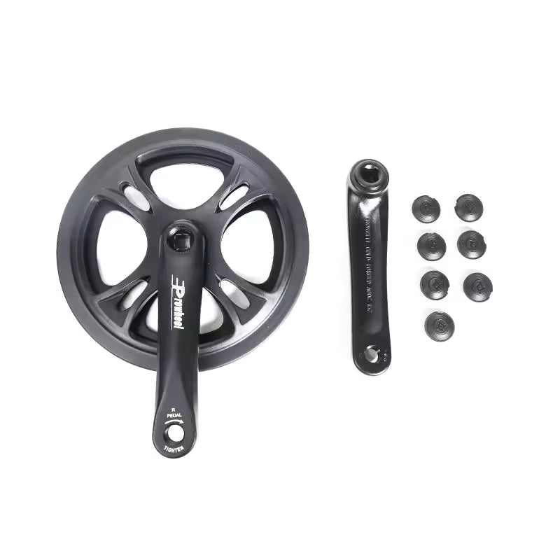 Vervaardigd uit hoogwaardig aluminium en ontworpen voor gebruik met standaard square taper trapassen, levert dit crankstel een stabiele en betrouwbare trapervaring, perfect voor zowel dagelijks gebruik als sportieve ritten. De geïntegreerde beschermplaat voorkomt dat de ketting eraf loopt, zodat u altijd zorgeloos kunt rijden.